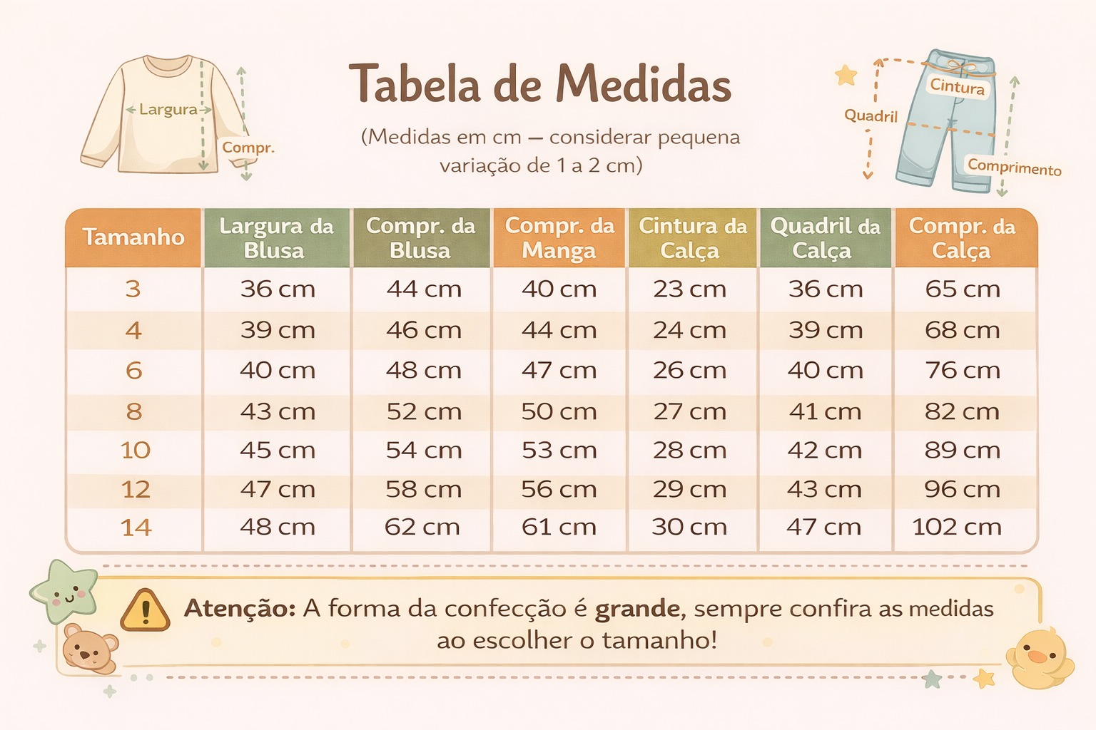 GUIA DE MEDIDAS DOS CONJUNTOS DE INVERNO